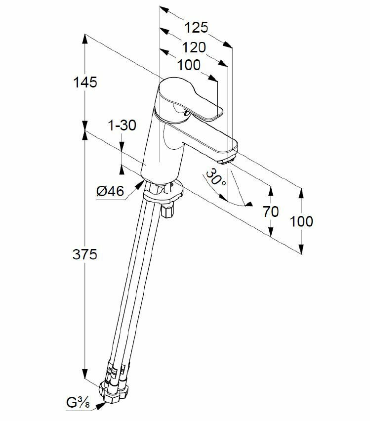Pure&Easy, смеситель для умывальника, неповоротный излив, без донного клапана, высота излива 7 см, арт. 372750565, Kludi
