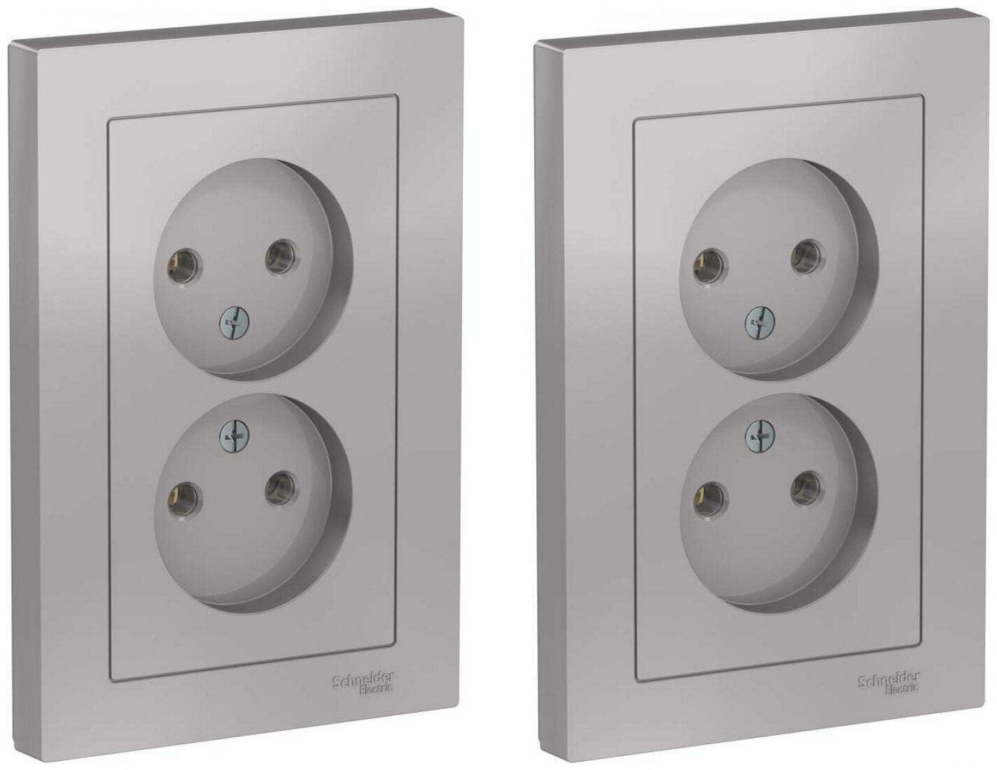 Розетка двойная в сборе Schneider Electric AtlasDesign без заземления, без шторок, 16А Алюминий (комплект 2шт)