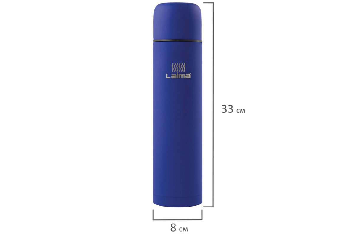 Термос LAIMA классический с узким горлом, 1 л, нержавеющая сталь, синий, 605124 - 1 шт.