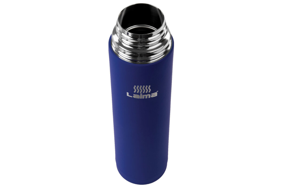 Термос Laima классический с узким горлом, 1 л, нержавеющая сталь, синий, 605124