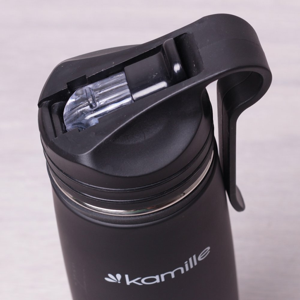 Термос-Бутылка спортивная 500 мл. Kamille KM-2058 из нержавеющей стали с трубочкой и клипсой (черный)