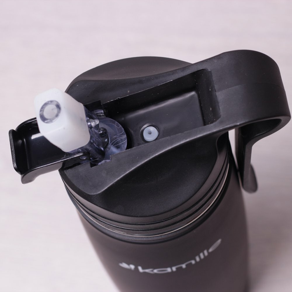 Термос-Бутылка спортивная 500 мл. Kamille KM-2058 из нержавеющей стали с трубочкой и клипсой (2058 / черный)
