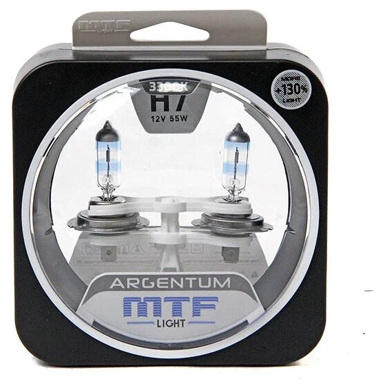 Галогенные автолампы MTF Light серия ARGENTUM +130% H7, 12V, 55W, комплект 2 лампы