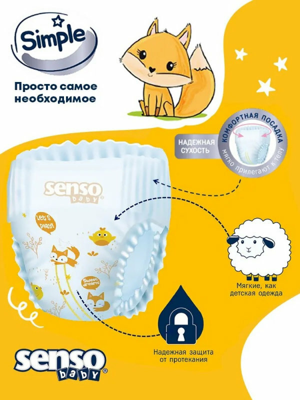 SENSO/сенсо Baby Подгузники для детей «SIMPLE» S 5-44 (11-25кг) 44шт