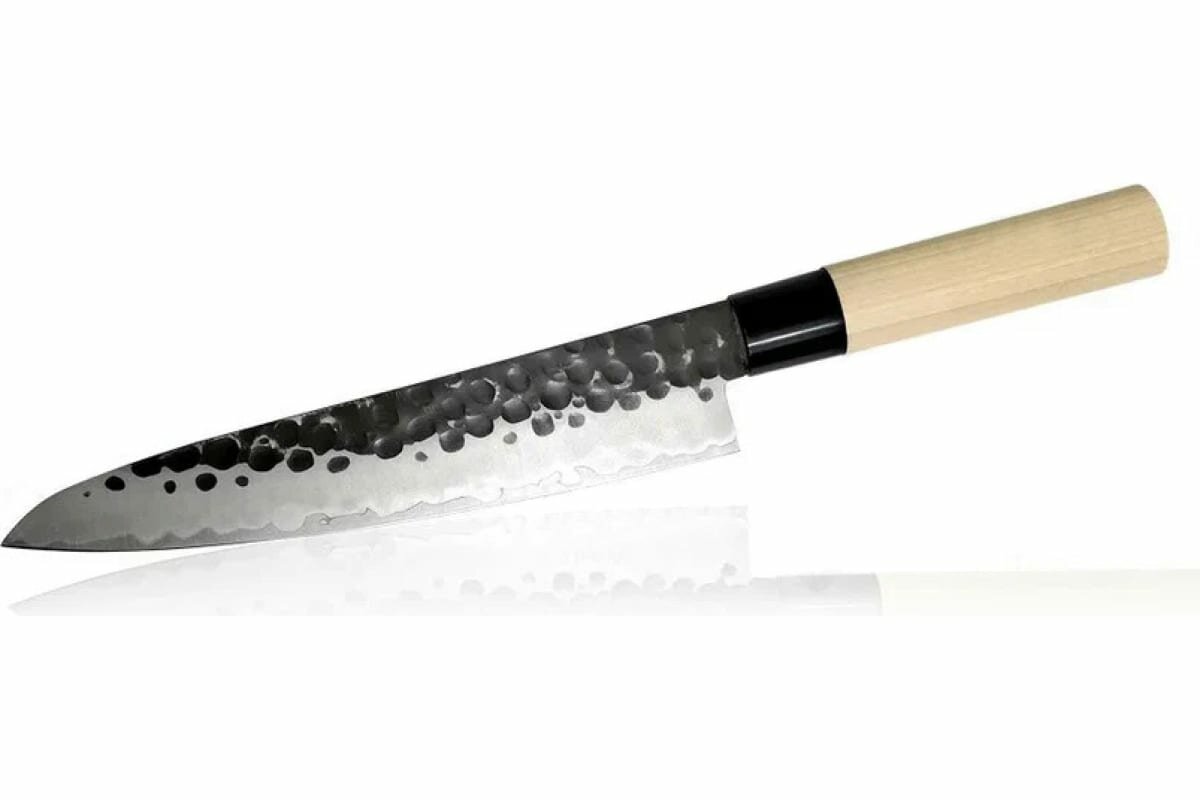 TOJIRO Нож кухонный поварской hammered finish длина лезвия 210 мм, сталь vg-10, 3 слоя, рукоять магнолия F-1115 интересное: