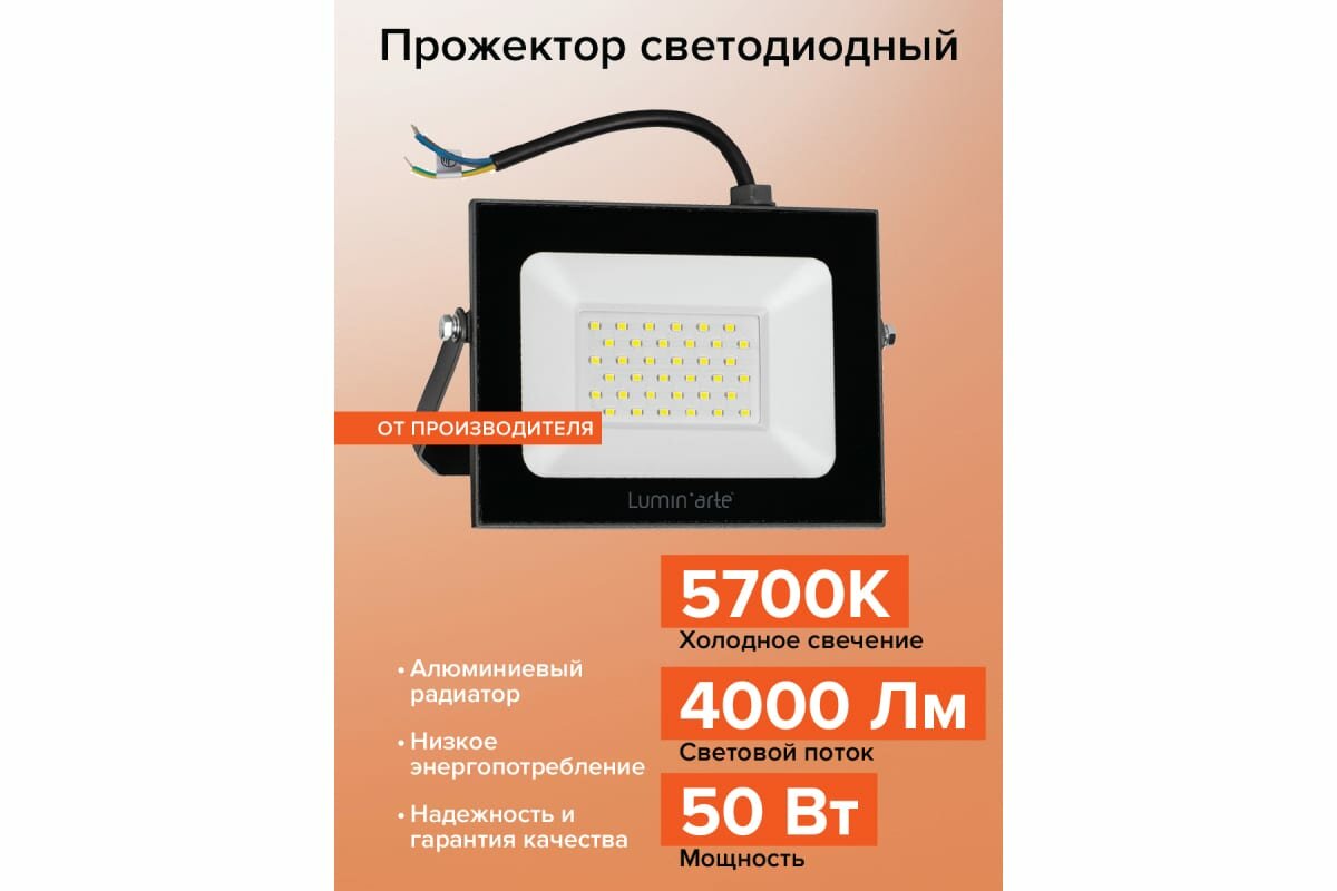 Прожектор светодиодный 50ВТ 5700К LFL-50W/05 LED IP65 Lumin`arte WOLTA