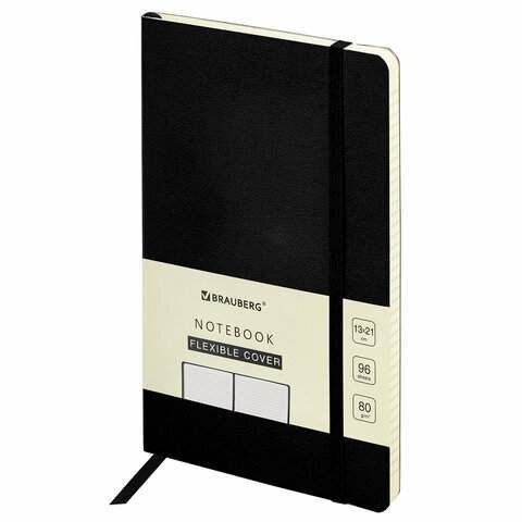 Блокнот А5 (162х218 мм), BRAUBERG "NOTE", под кожу софт-тач, с резинкой, 80 л., клетка, черный, 113437