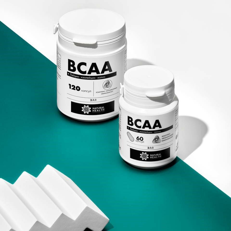 Аминокислоты BCAA 2:1:1 / БЦАА, 60 капсул. Спортивное питание для мужчин и женщин, витамины для мышц и мужского здоровья. Natural Health / Натуральное здоровье
