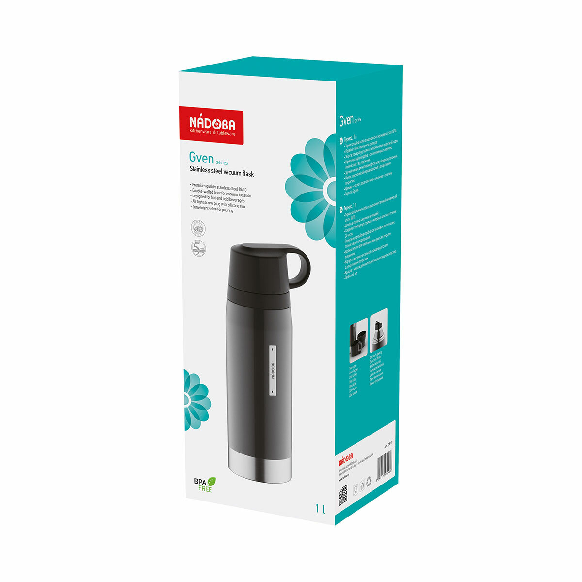 Термос с 2 чашками, 1 л, NADOBA, серия GVEN, арт: 735111 интересное: