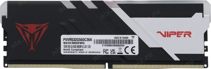 Модуль памяти 32 GB PATRIOT VVR532G560C36K DIMM, DDR5, 5600 МГц, KIT2