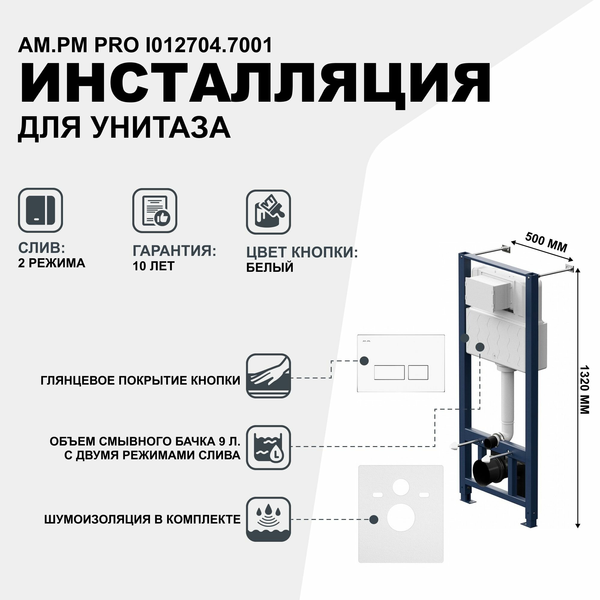 Инсталляция для подвесного унитаза AM.PM Pro I012704.7001 с пневматической кнопкой Pro S пластик, звукоизоляционной пластиной