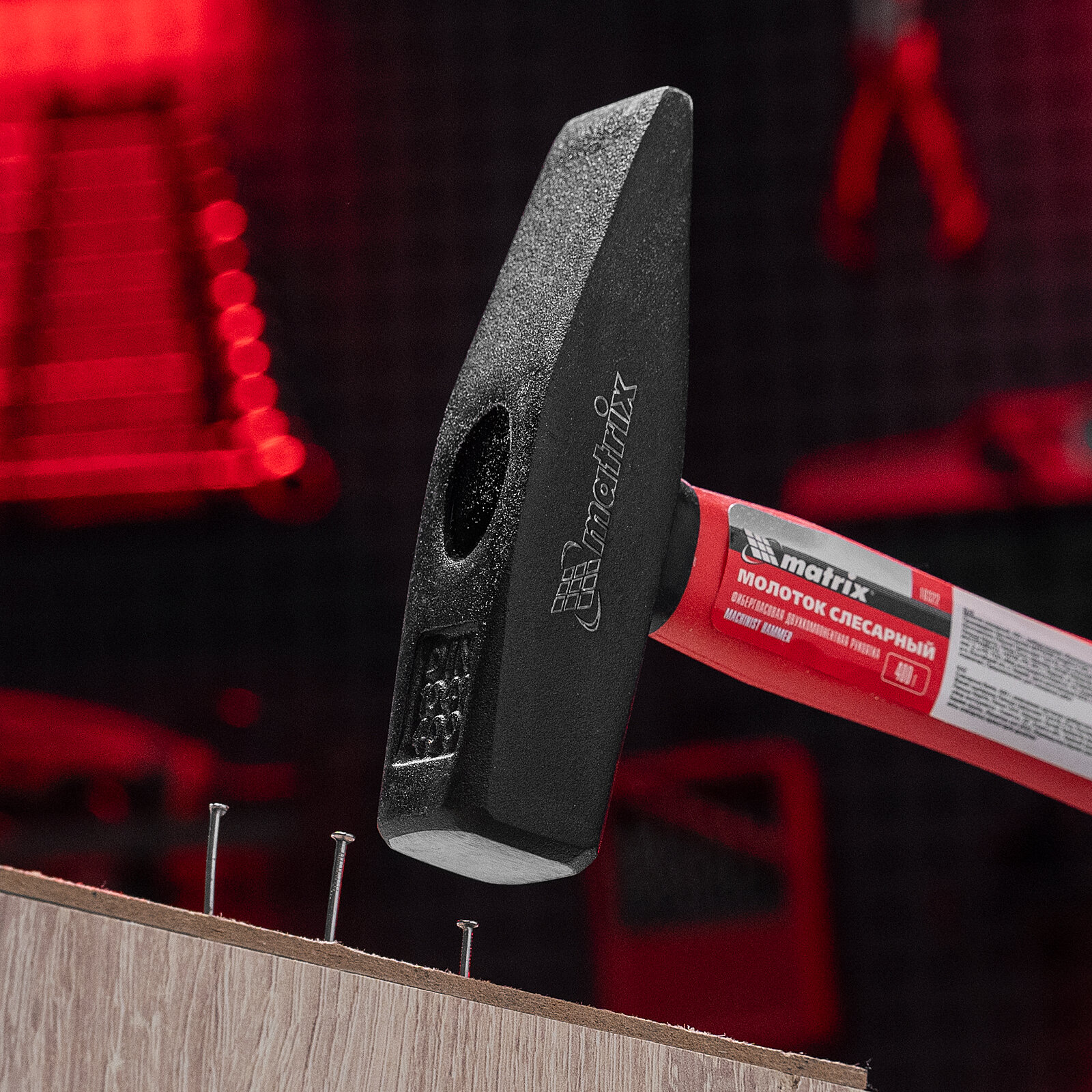 Молоток слесарный Matrix, фиберглассовая обрезиненная рукоятка, 400 г