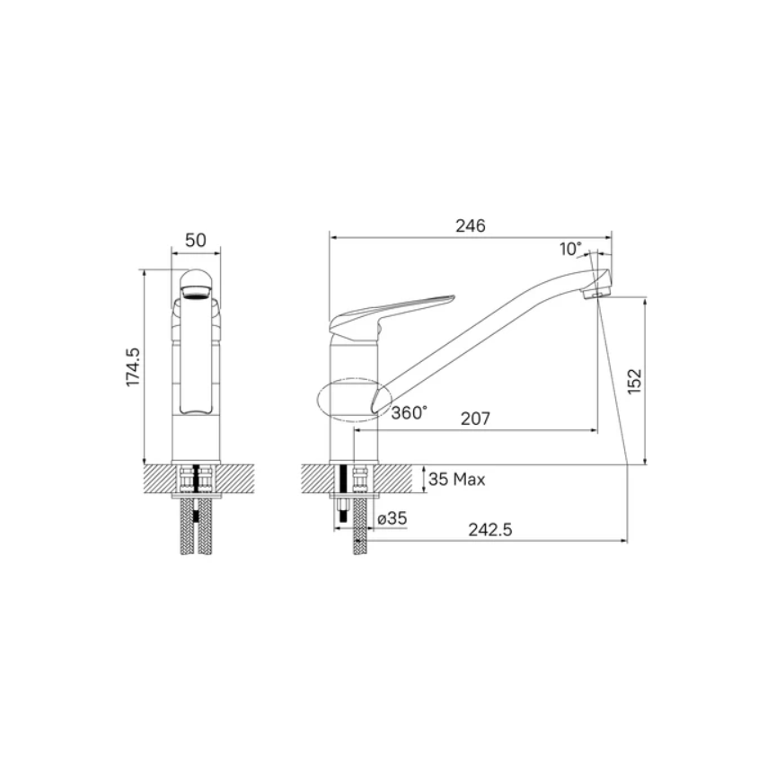 | Тип излива | гибкий / поворотный |