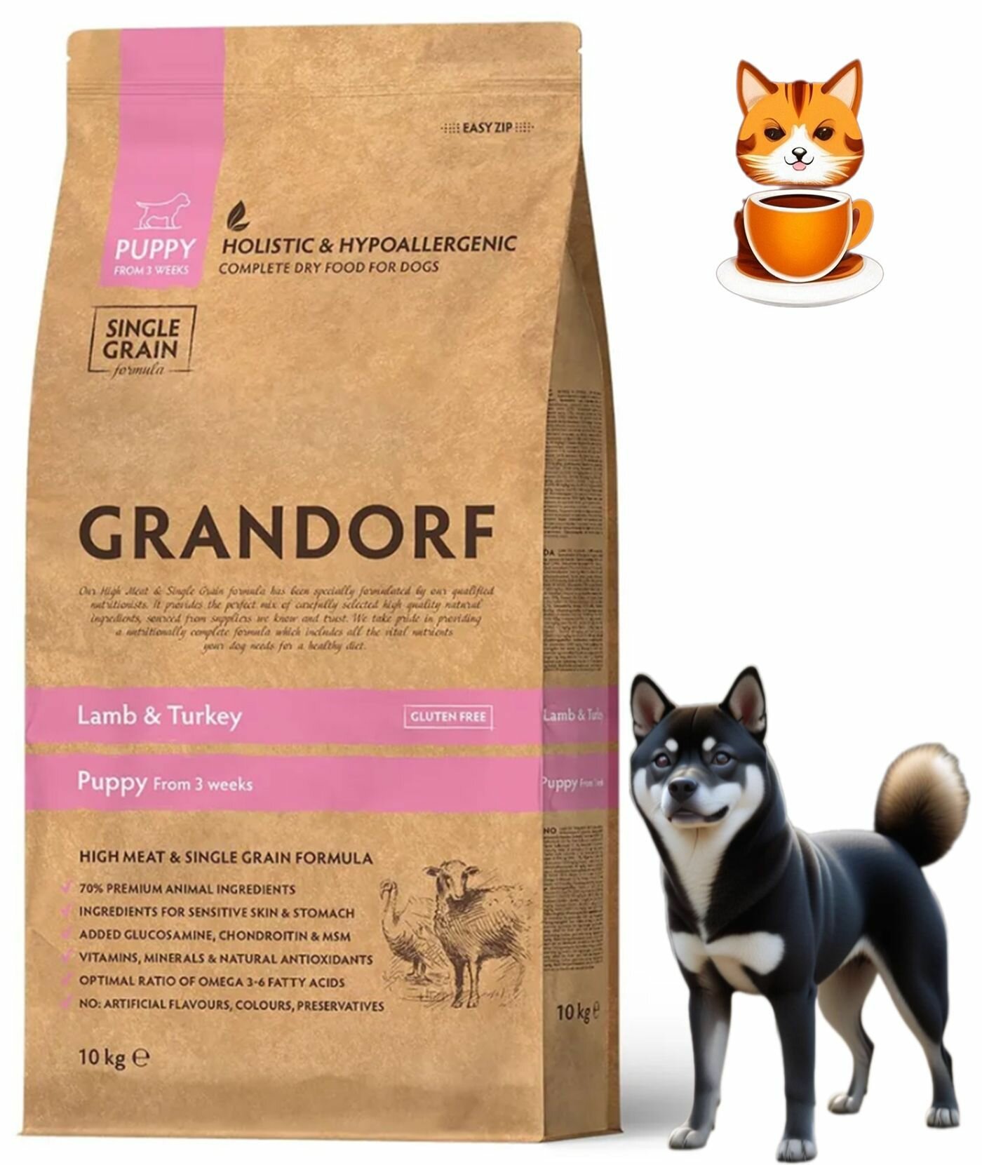 Сухой корм Grandorf для щенков, ягненок/индейка, низкозерновой, 10 кг