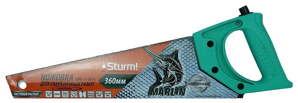 Ножовка для сверхточных работ Sturm! с карандашом Marlin,360мм,15-16TPI,2D калёный зуб,St, 1060-11-3616