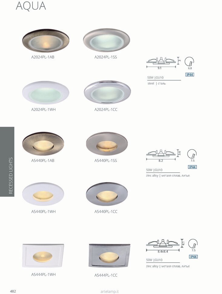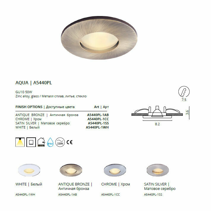 Светильник встраиваемый Arte Lamp AQUA A5440PL-1WH