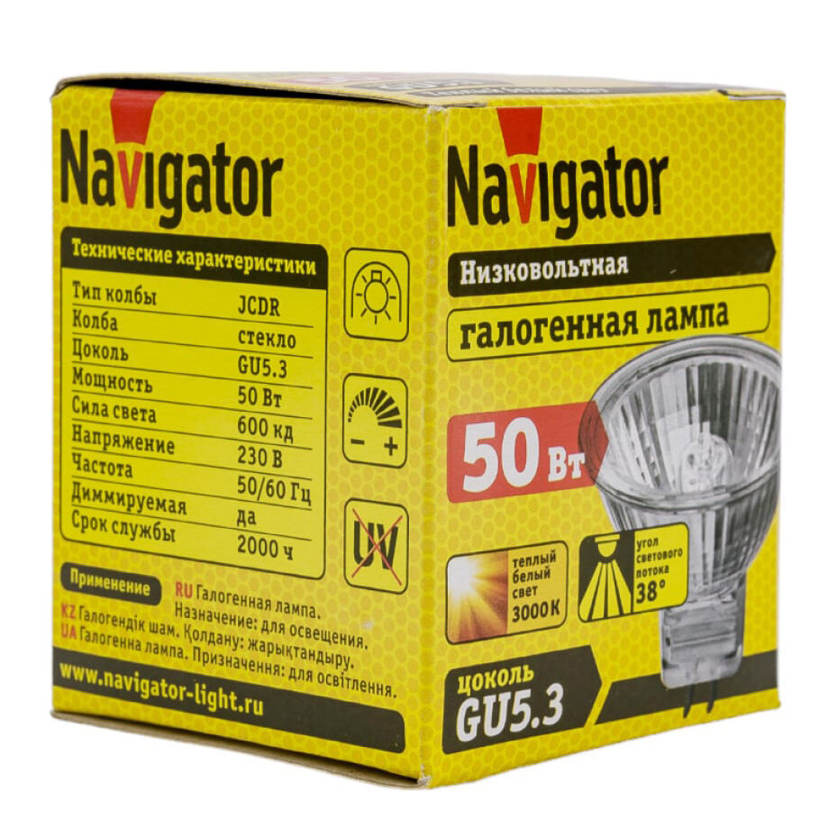 Лампа галогенная Navigator 94206, GU5.3, JCDR, 50 Вт, 3000 К интересное: