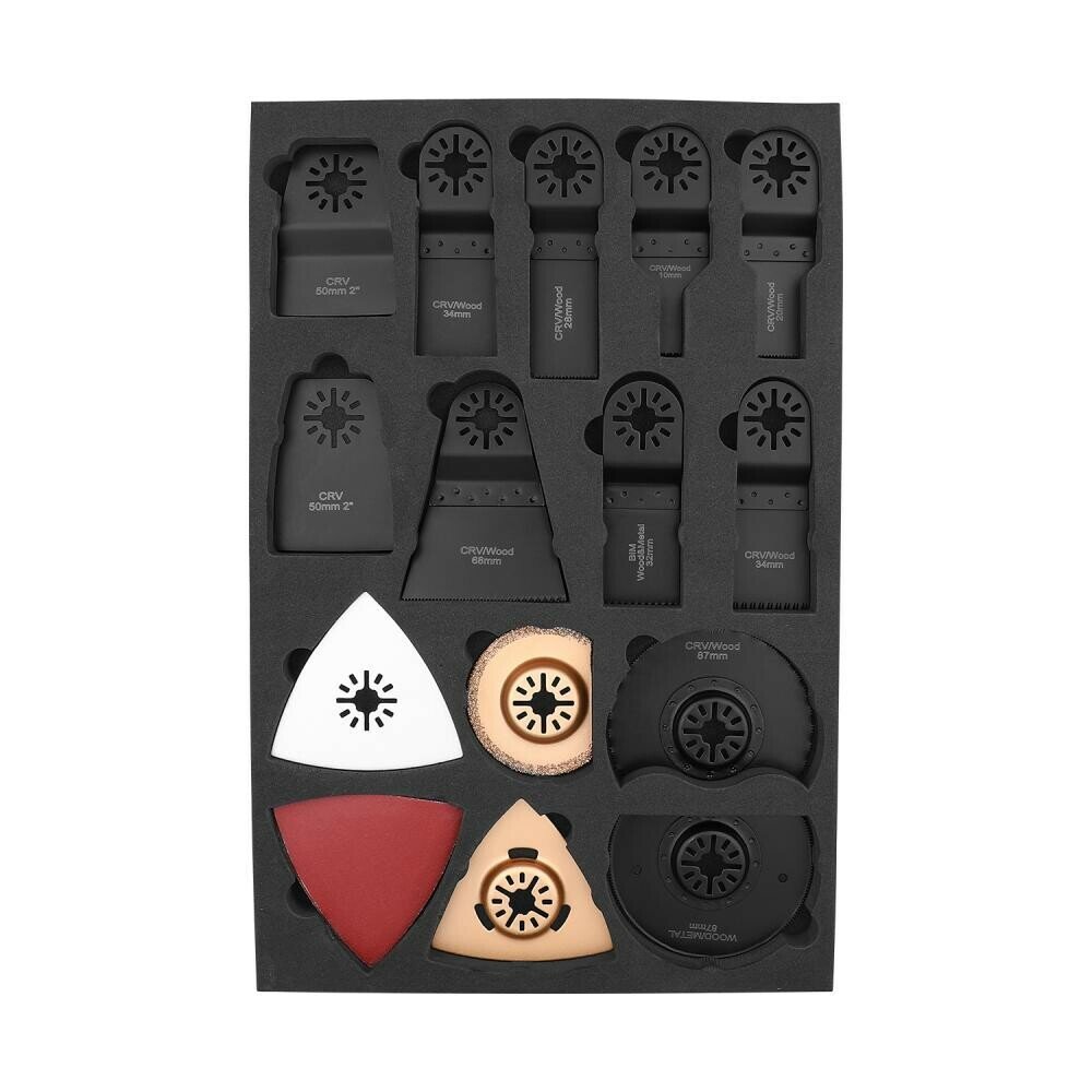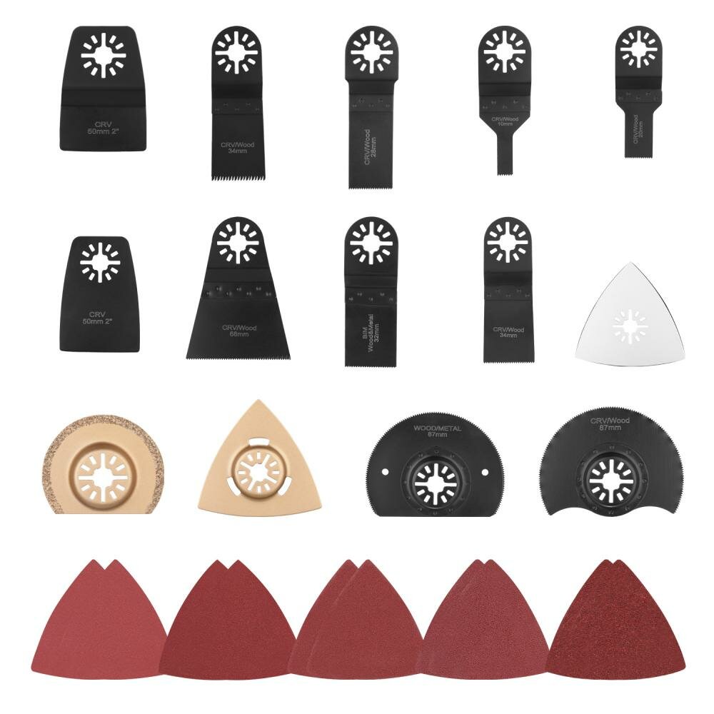 | Состав набора | пильный диск 34.1X0.66X18T CRV; пильный диск 34.1X0.66X14T CRV; пильный диск 10x0.66x18T CRV; пильный диск 20 x0.66x18T CRV; пильный диск 32.5 x0.8x18T BIM(M42+D6A); пильный диск 28ммx48ммx0.52x18T CRV; пильный диск 68x0.66x18T CRV; полукруглый диск для резки древесины (87мм); биметаллический пильный диск (87 мм); плоский скребок; изогнутый скребок; полукруглый диск 64; треугольное лезвие 80; диск EVA 80; наждачная бумага 80 мм (60х2/80х2/120х2/180х2/240х2) |