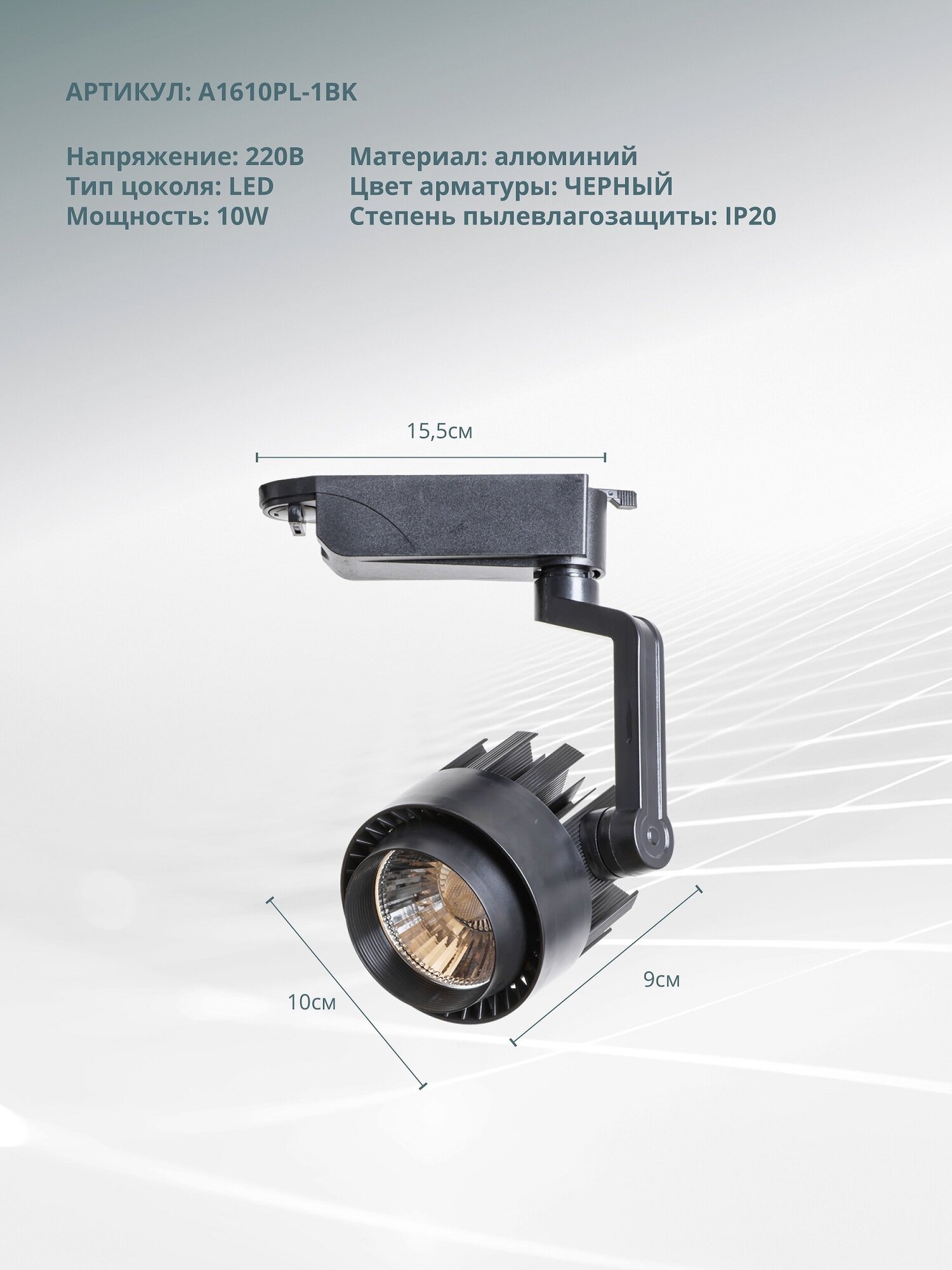 Трековый светильник-спот Arte Lamp Vigile A1610PL-1BK, кол-во ламп: 1 шт., цвет плафона: черный интересное: