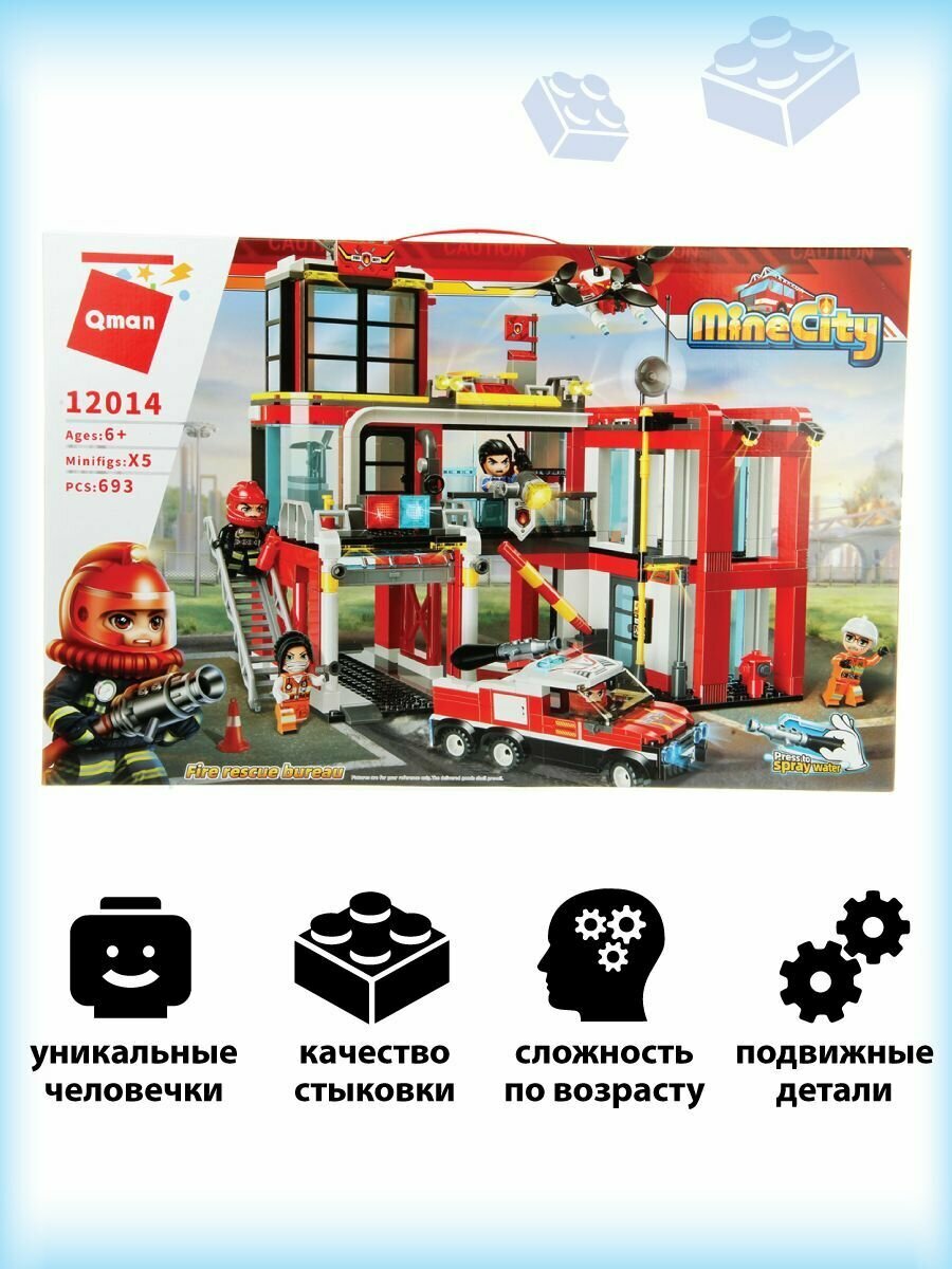Конструктор QMAN 12014 Огнеборцы. Пожарная станция, 693 детали