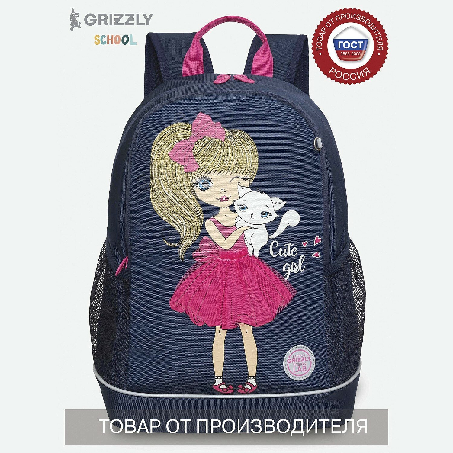 Grizzly Рюкзак школьный, 38 х 28 х 18 см, Grizzly 363, эргономичная спинка, тёмно-синий/розовй RG-363-9_1