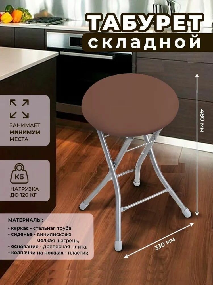Табурет складной с мягким круглым сидением (ТБСК2/3 коричневый) (4/1) Ижевск Размеры в сложенном вид .