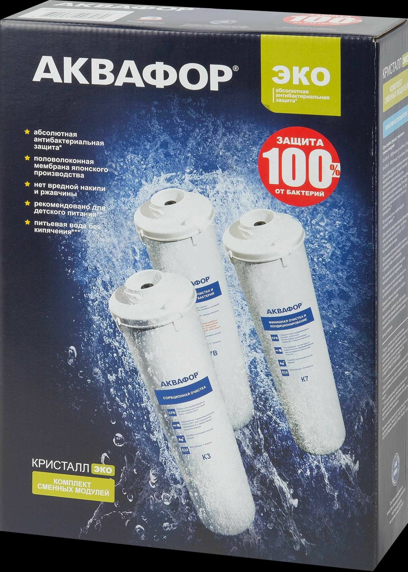 Набор картриджей Аквафор К3-КН-К7В ЭКО Н для жесткой воды защита от бактерий интересное: