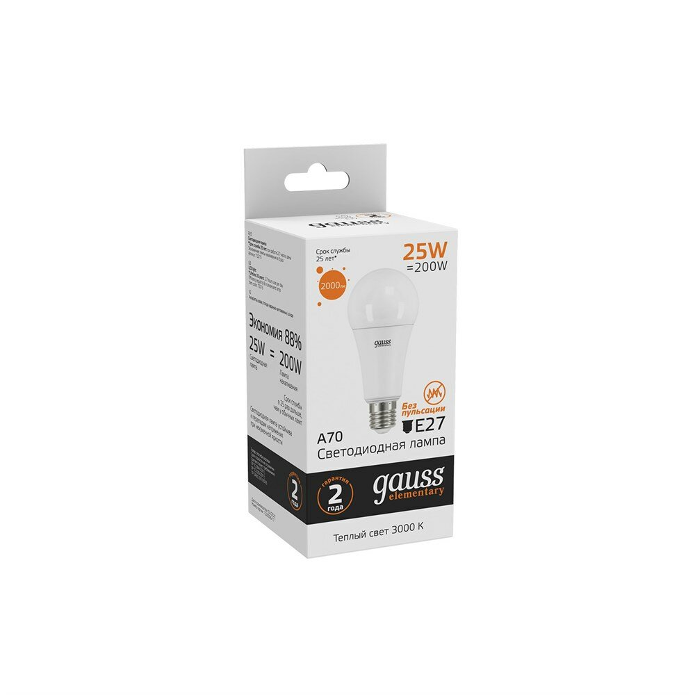 Светодиодная лампа GAUSS Elementary A70 25W 2000lm 3000K E27 LED 1/10/50