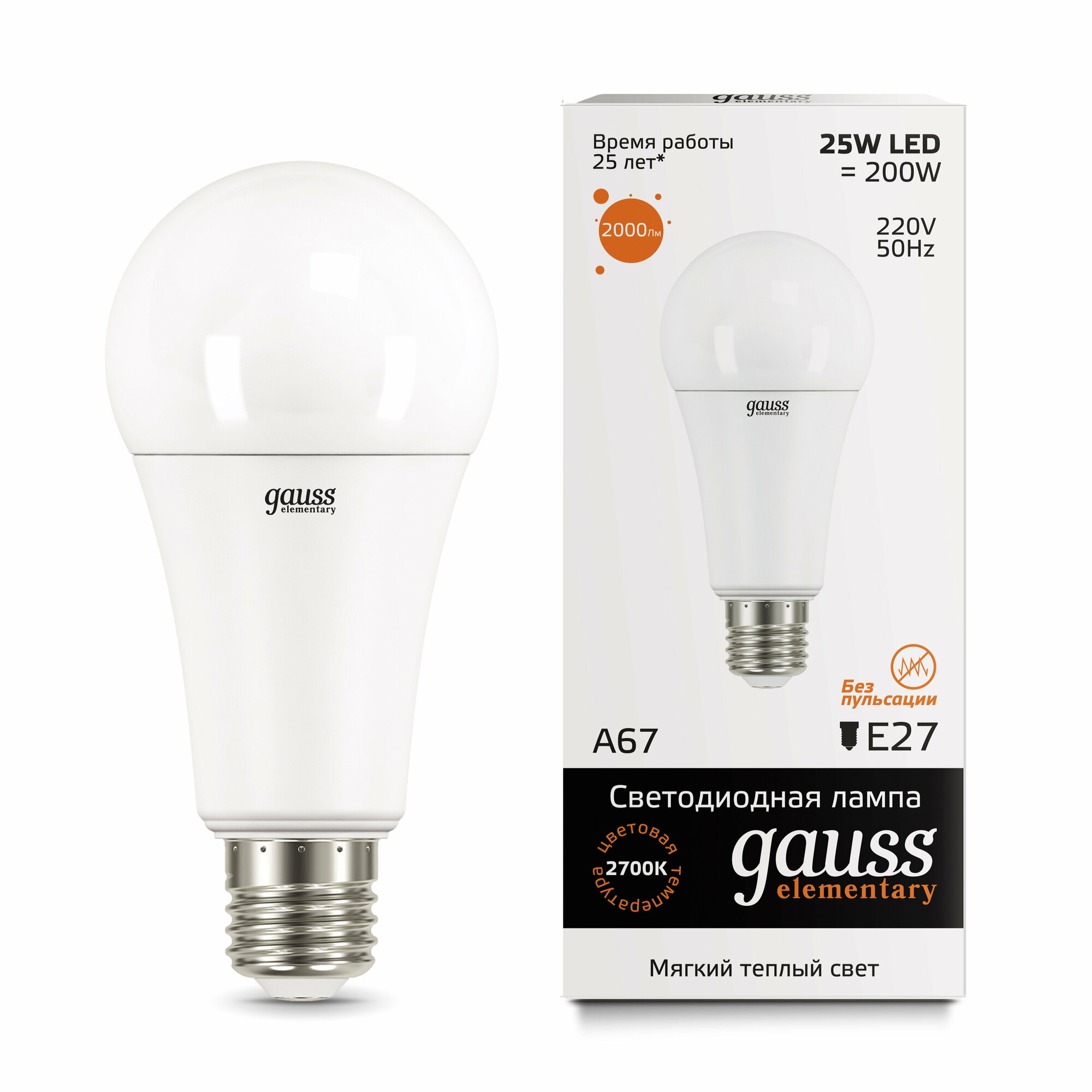 Лампа светодиодная Elementary A67 25Вт E27 3000К Gauss GAUSS 73215 (1 шт.)