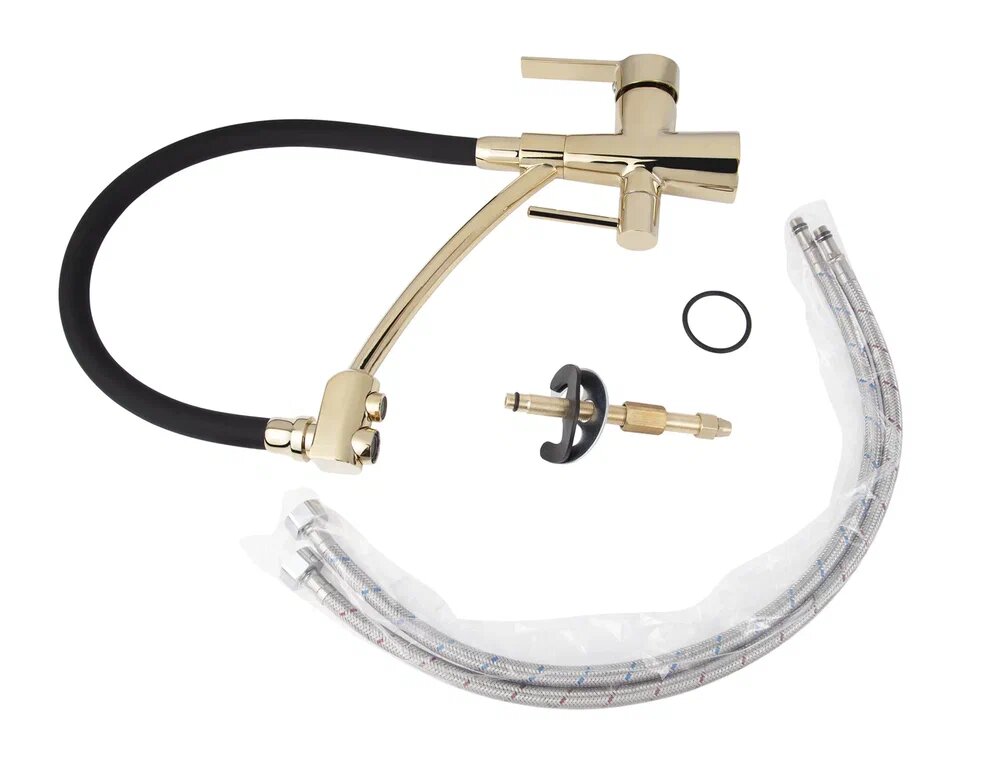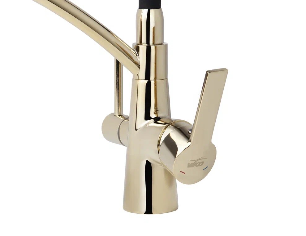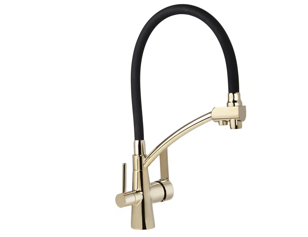 Смеситель для кухни с краном для питьевой воды VIKO V-5523 с черным гибким изливом Gold