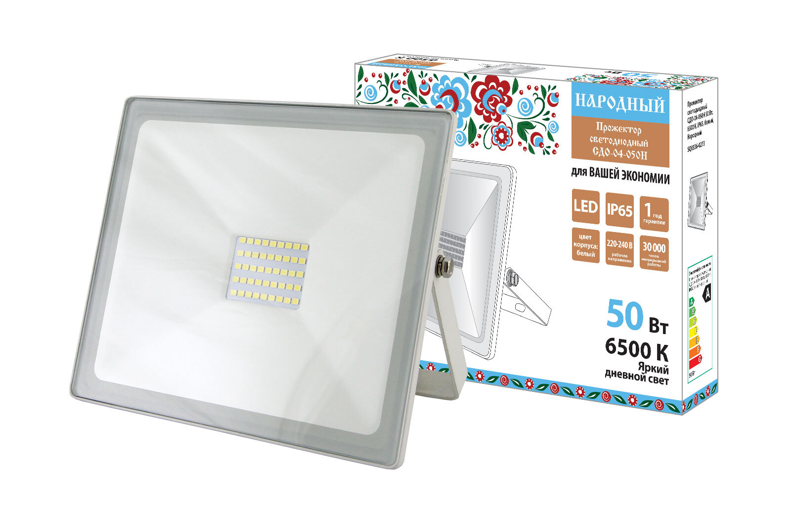 TDM SQ0336-0273 Прожектор светодиодный Сдо-04-050н 50 Вт, 6500 К, Ip65, белый, Народный .