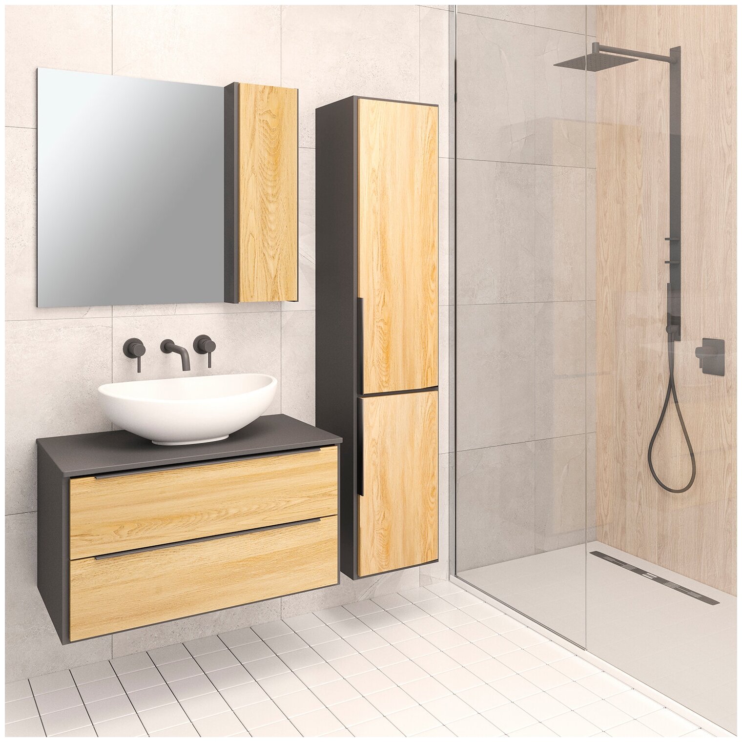 Тумба под раковину Runo Мальта 85, серый дуб, подвесная, под накладные умывальники
