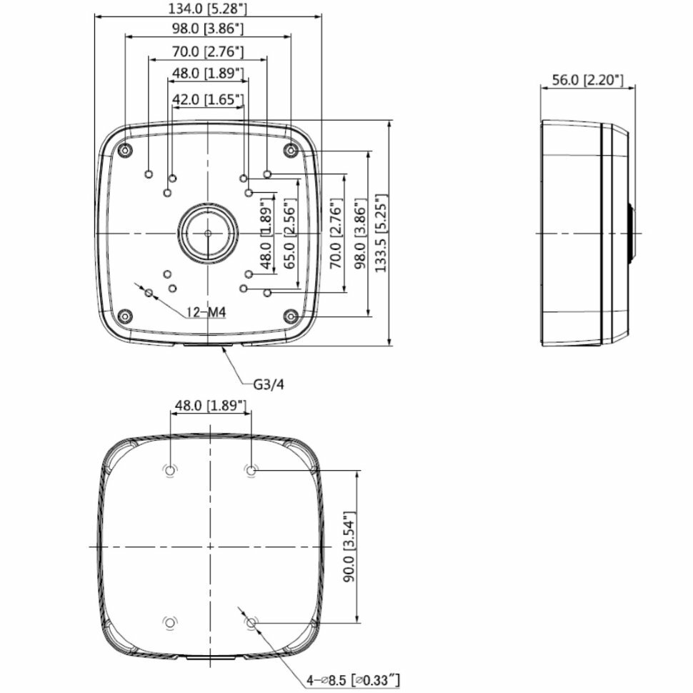 Монтажная коробка для уличных видеокамер серии HFWxxE; Размеры:134.0*134.0*53.5mm; Вес: 0.6Kg Dahua DH-PFA121