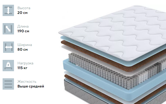 Односпальный матрас 80х190 SOVA Plus F ортопедический эффект Средний с независимым пружинным блоком