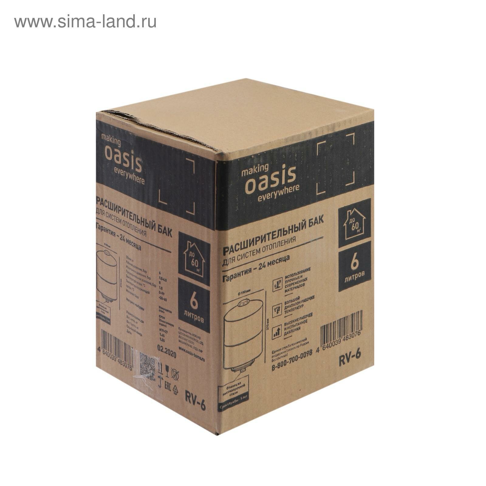 OASIS Расширительный бак для систем отопления RV-6 4640039483076