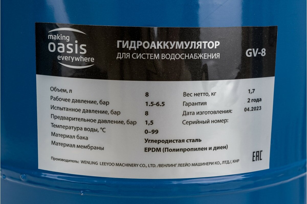 Гидроаккумулятор Oasis GV-8 making Оasis everywhere
