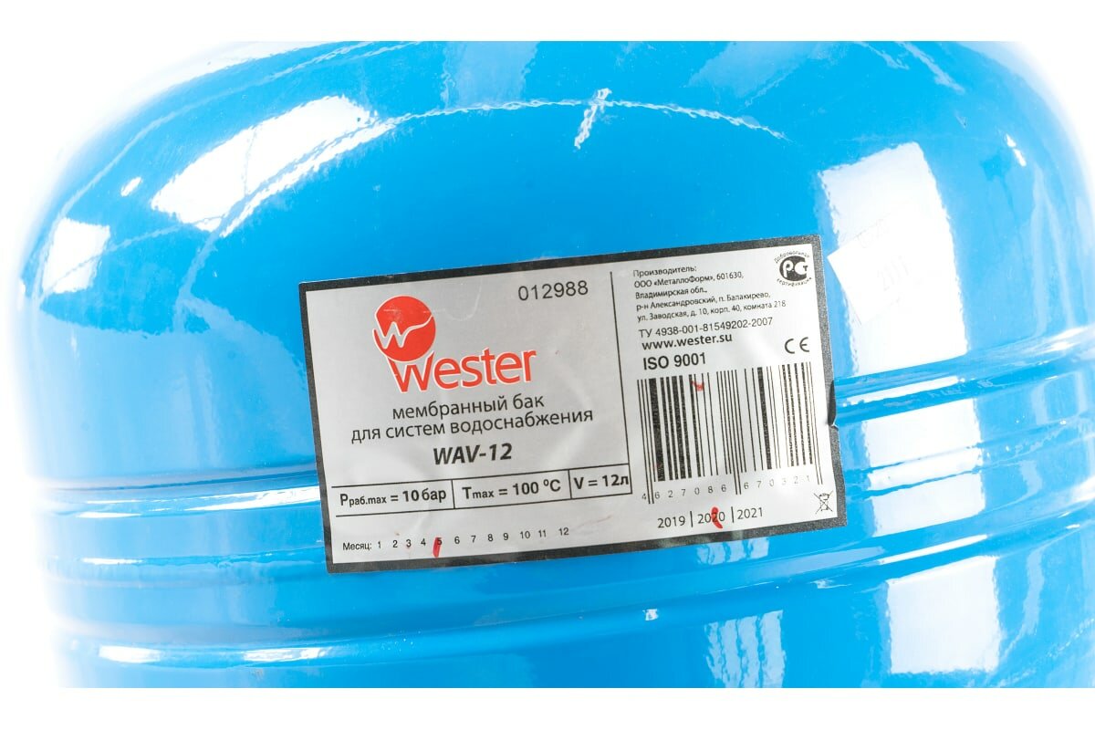 Гидроаккумулятор 12 литров WAV12 Wester 10 бар Россия, вертикальный, синий для водоснабжения (0-14-1030)