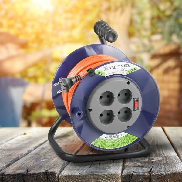 Удлинитель на катушке ЭРА 4 гнезда 40 м ПВС 2×1 кв. мм 10 А 2200 Вт IP 20