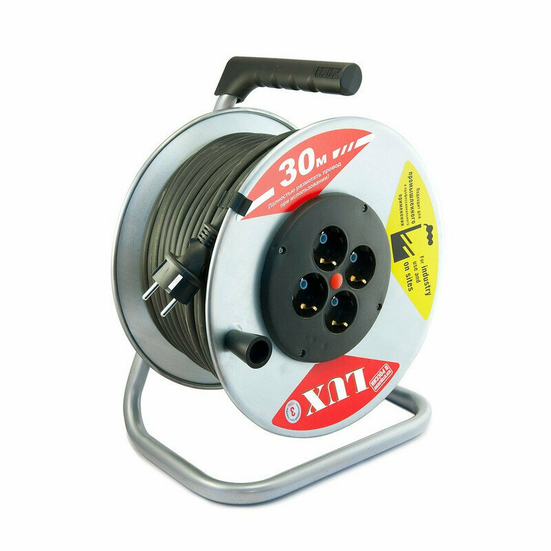 Удлинитель Lux 30 м, металическая катушка, 16А, 4 розетки