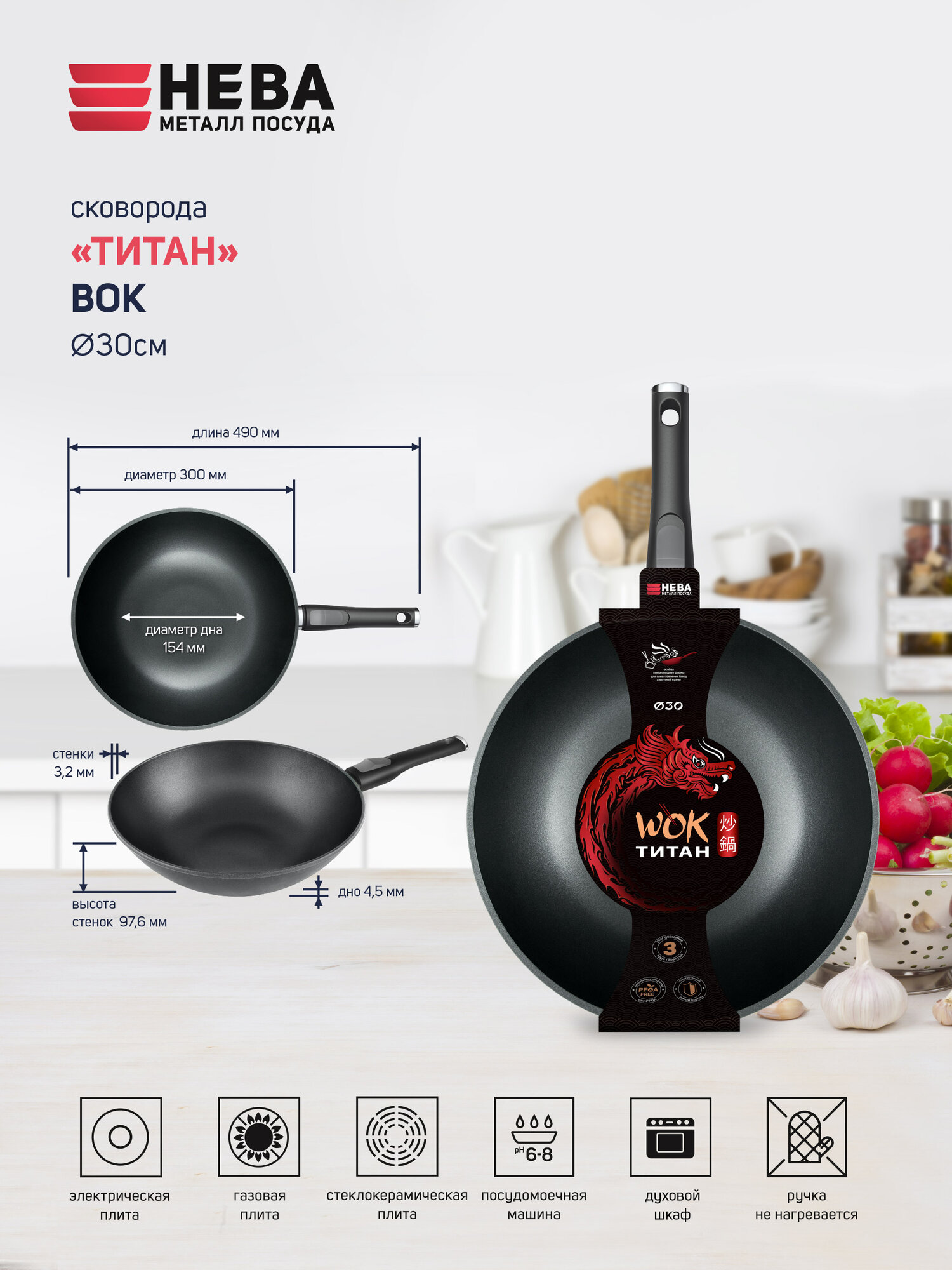 Сковорода "Вок" Нева Металл Посуда Титан, 30, с/р интересное: