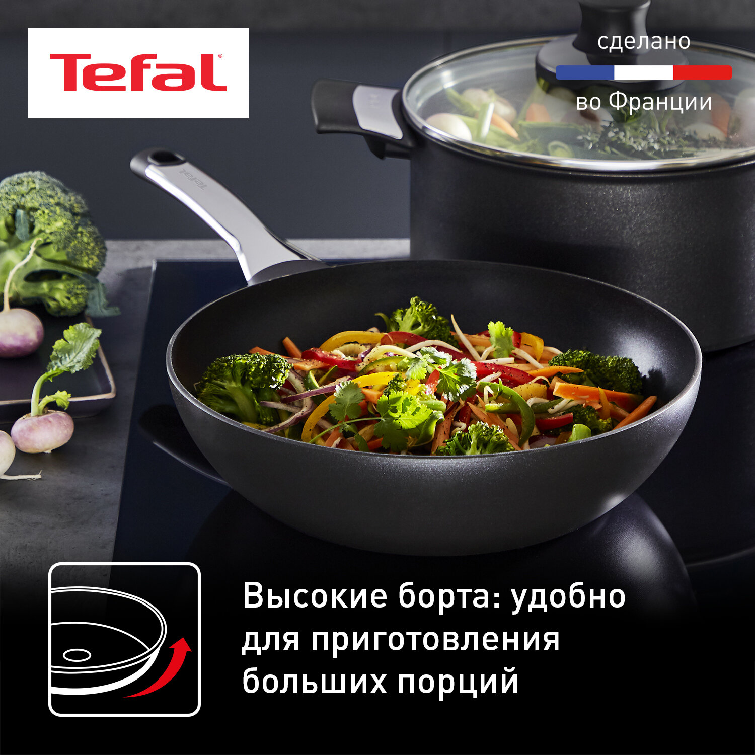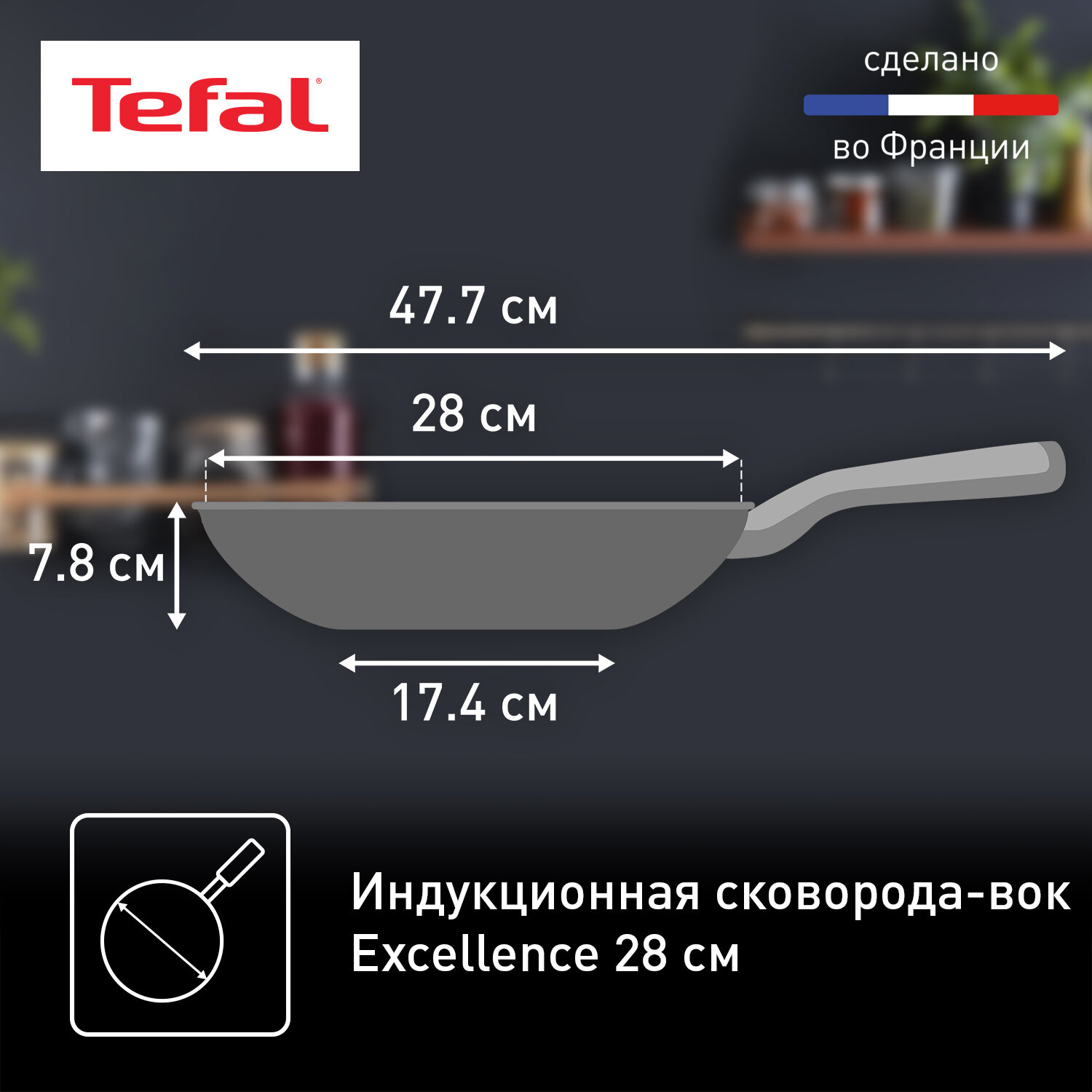 Сковорода вок Tefal Excellence G2691972, 28 см, глубокая, подходит для индукции, сделано во Франции