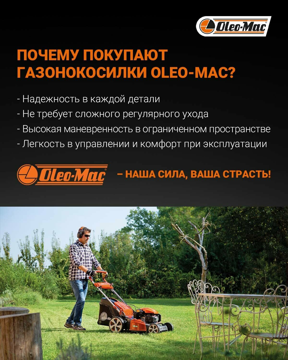 Газонокосилка Oleo-Mac G 44 РВ Comfort Plus бензиновая несамоходная интересное: