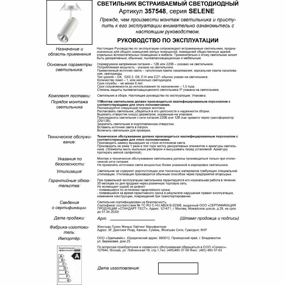 357551 NT18 000 Встраиваемый светодиодный светильник-спот Novotech SELENE