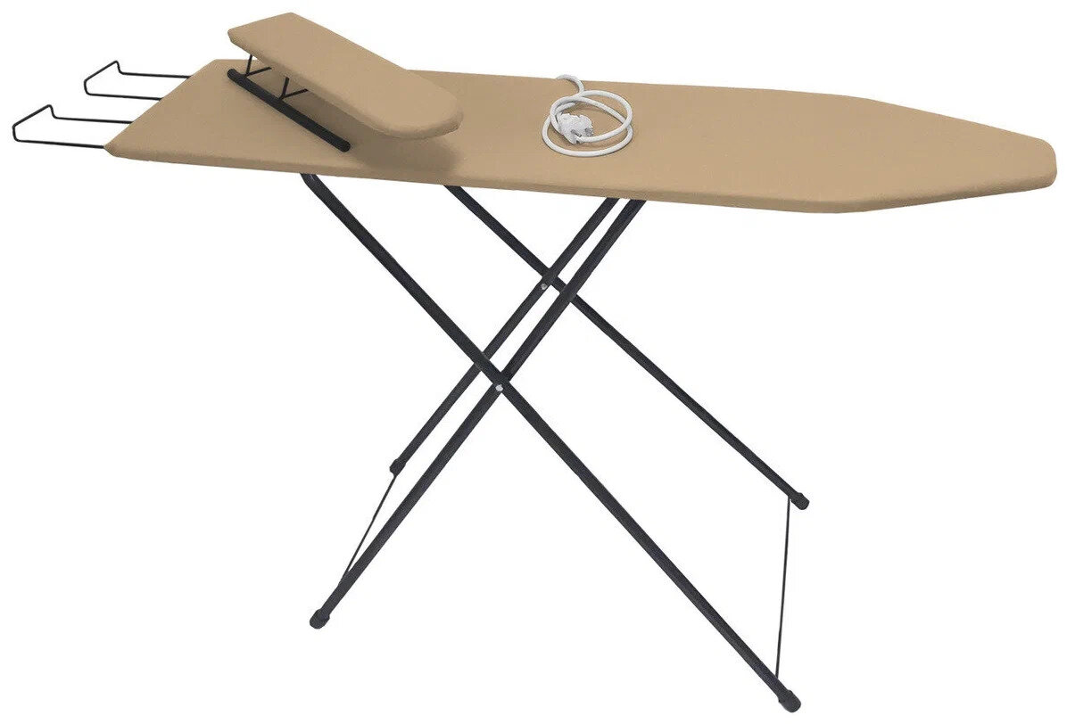 Доска гладильная с подставкой под утюг, подрукавником, удлинителем с розеткой, 30 х 110 см, цвет бежевый