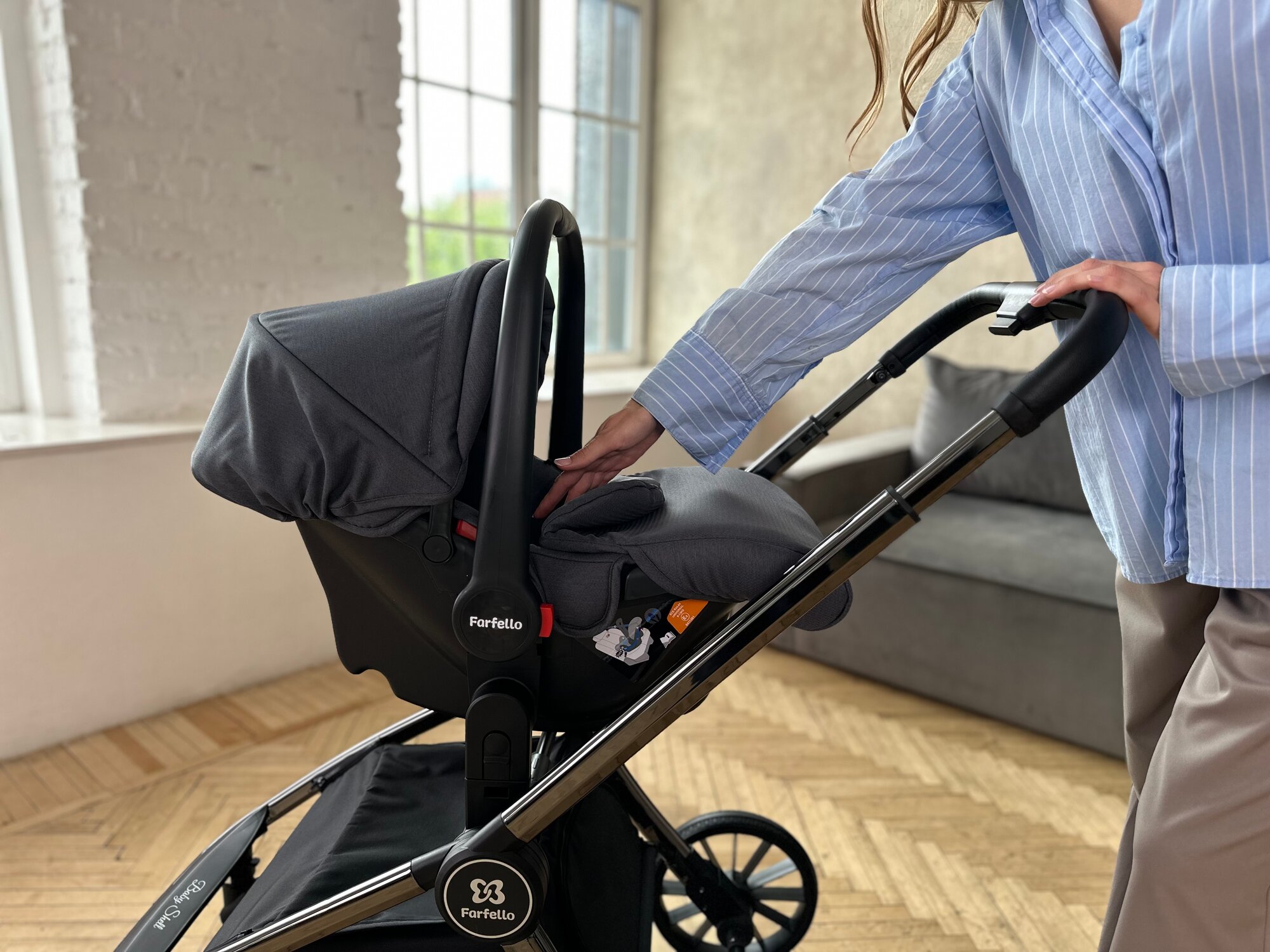 Купить Коляска 3 в 1 для новорожденных Farfello Baby Shell, Темно-серый хром