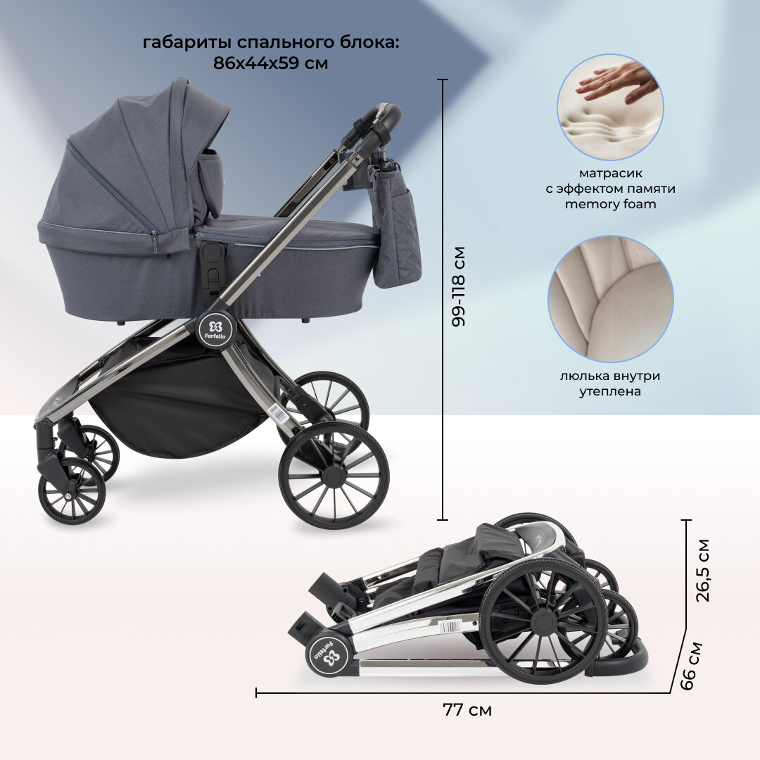 СохранитьКоляска 3 в 1 для новорожденных Farfello Baby Shell, Темно-серый хром интересное: