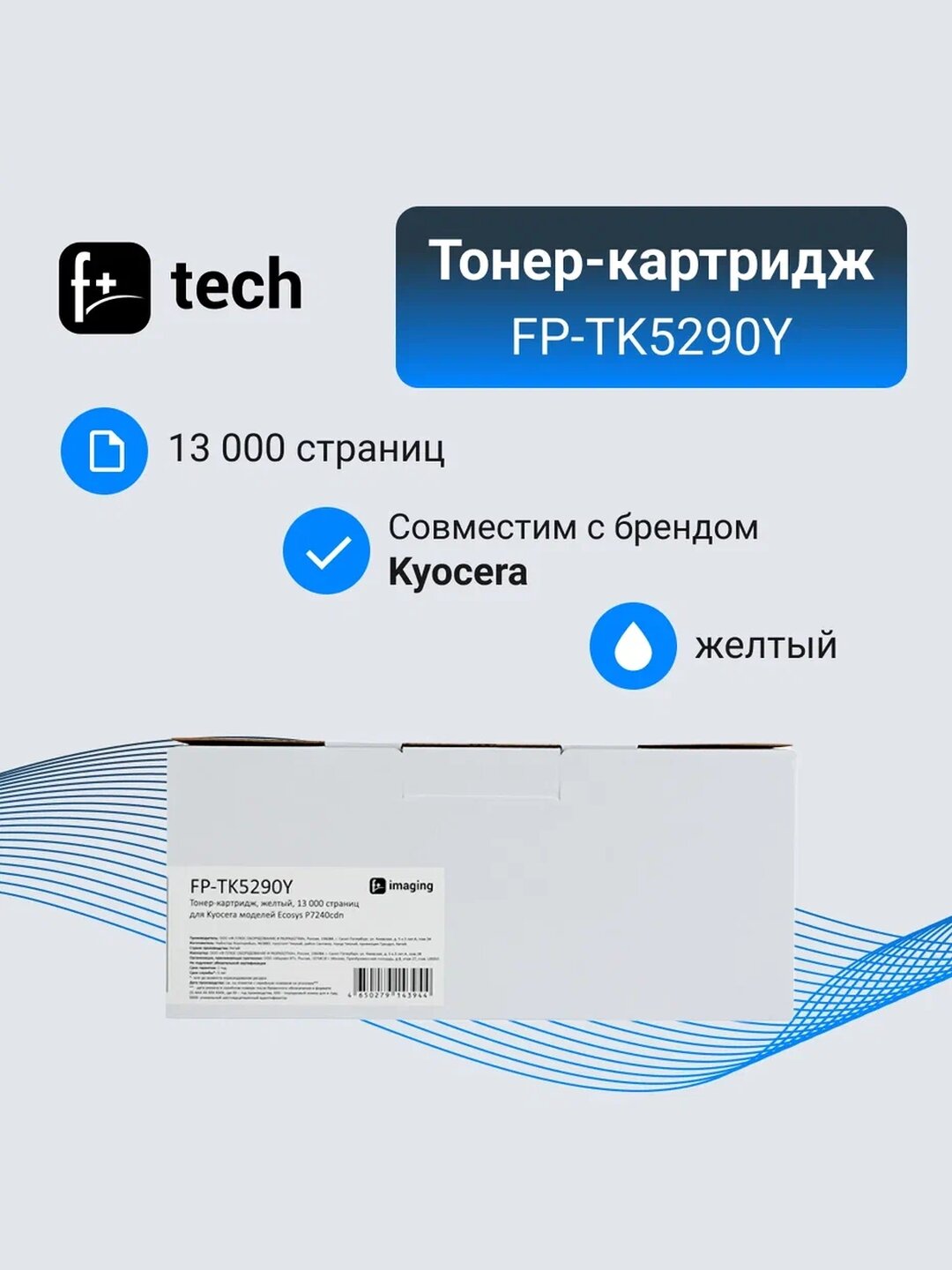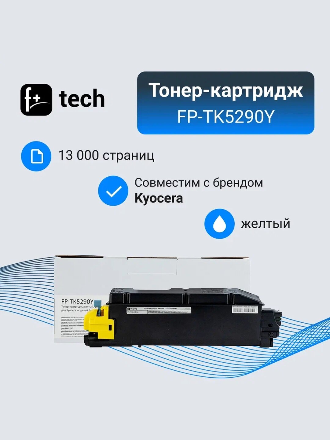 Купить Тонер-картридж F+ imaging, желтый, 13 000 страниц, для Kyocera моделей Ecosys P7240cdn (аналог TK-5290Y /1T02TXANL0), FP-TK5290Y