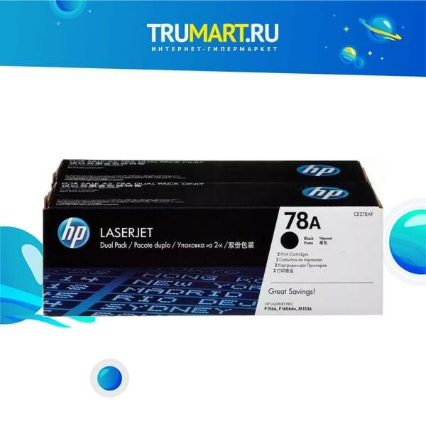 Картридж HP CE278AD/CE278AF для HP LaserJet Pro P1566, P1567, P1568, P1569, P1606dn, P1607dn, P1608dn, P1609dn, M1530, M1536dnf, M1537dnf, M1538dnf, M1539dnf (ресурс 2x2100 страниц) Двойная упаковка