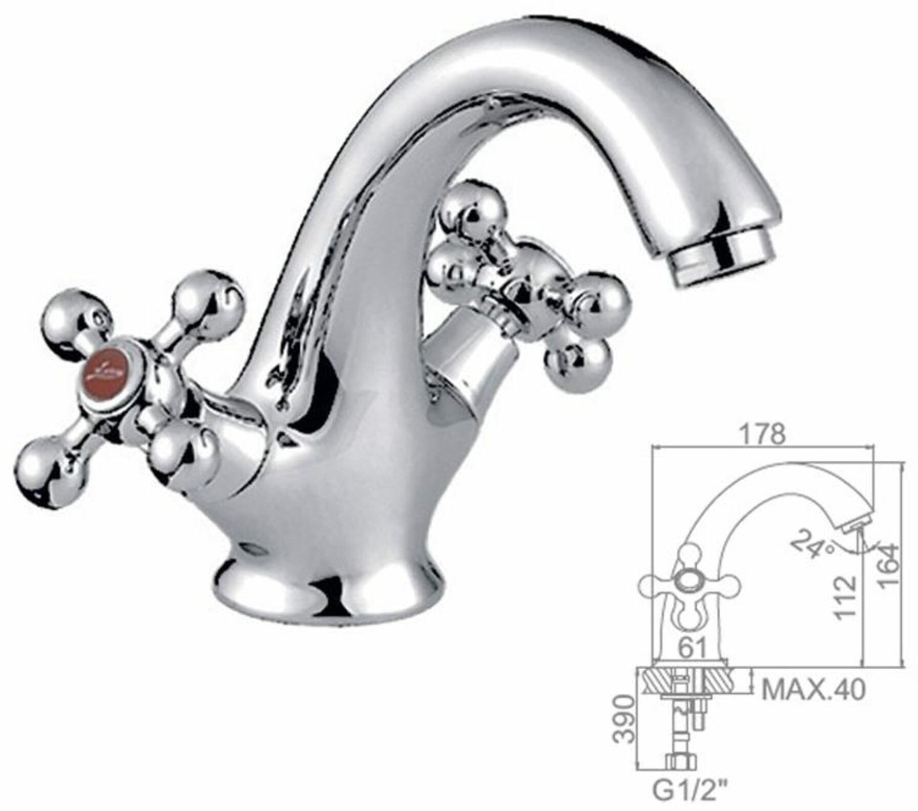Смеситель для умывальника, 1/2 керам, шпиль Ledeme, 1/10; L1019