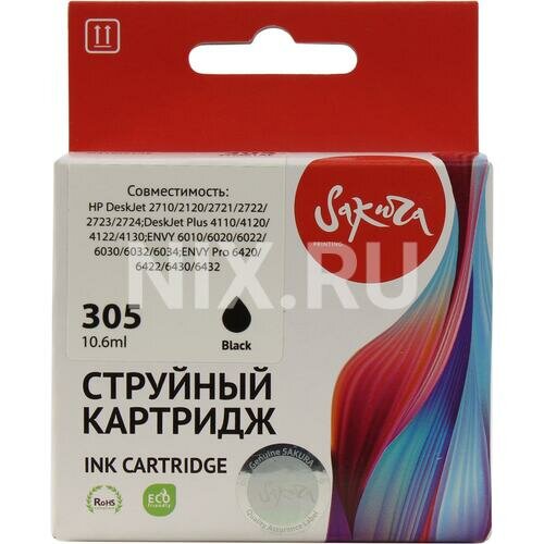 Картридж струйный Sakura 305 Bk / 3YM61AE черный, пигментный, 10,6 мл., 240 стр для HP (SI3YM61AE)